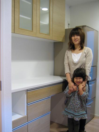 ■ オリジナル食器棚 【キッチン面材合わせ】練馬区の新築マンションにお住まいのTさま。キッチンの面材に合わせて造り付けの食器棚を製作しました。扉は、ガラスと板の組み合わせで、 見せる隠すの収納分けができます。ちょっとした工夫ですっきりと統一感のある素敵なキッチンルームになりました。