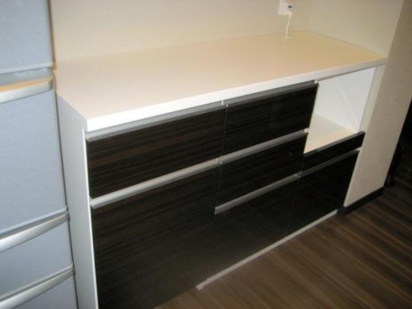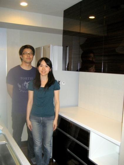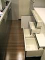 ■ オリジナル食器棚 【キッチン面材合わせ】板橋区の新築マンションにお住まいのTさま。キッチンの面材に合わせて造り付けの食器棚を製作しました。 引出には食器を沢山収納するため、深めにしてソフトダンパー付きのレールを付けました。ゴミ箱も収納できてキッチンがすっきり整いました。