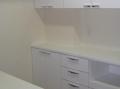 ■ オリジナル食器棚高崎市の新築マンションにお住まいのFさま。梁の凸凹に合わせて食器棚を製作したいとのご要望に、 本体の奥行きを変えることでフラットにしました。さらに3種類の形の取っ手をバランス良く組み合わせて統一感を出し、梁の印象が緩和されてすっきりとと整いました。