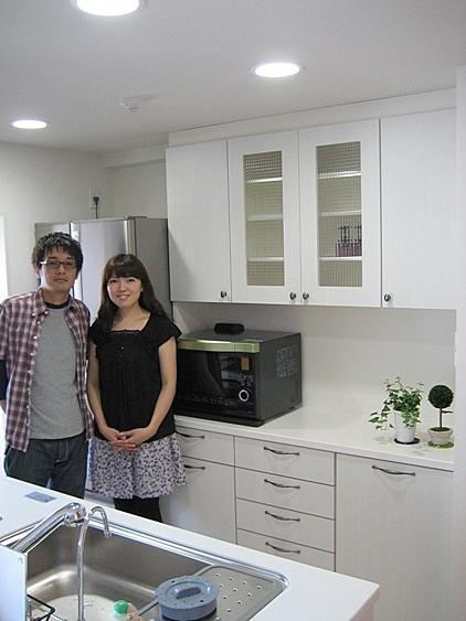 ■ オリジナルキッチンボード埼玉県の新築マンションにお住まいの I さま。フランス製のチェッカーガラスに、アンティークな取っ手の組み合わせは、 歌手でバンドのボーカルをされている奥様のセンスによるもの。収納にも工夫を凝らした、オリジナルの食器棚に仕上がりました。