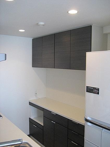 ■ オーダーメイドキッチンボード 【キッチン合わせ】東京都の新築マンションにお住まいの Tさま。キッチン扉の面材に合わせてオーダーメイドで製作しました。高さ、幅など自由に設計できるため奥さまのご要望通りに仕上がり、統一感のあるキッチンになりました。