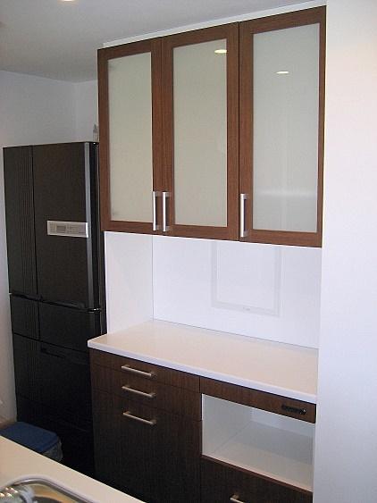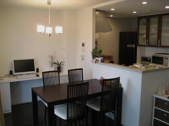 ■オーダーメイド食器棚&PCデスク 千葉県の新築マンションにお住まいのKさま 。食器棚はオーダーメイドを選択。室内のインテリアに合わせて、色や取手など数百種類の中からピッタリなものを選びました。ダイニング には、パソコン本体 プリンターを収納できる パソコンデスク も製作し ました。