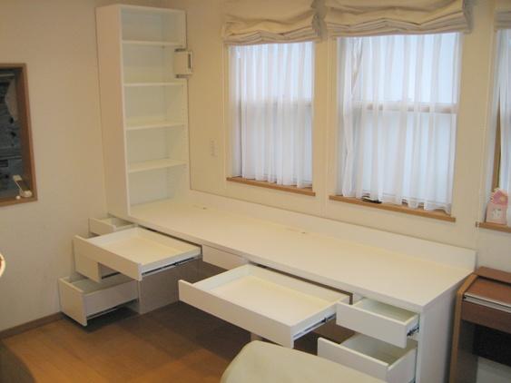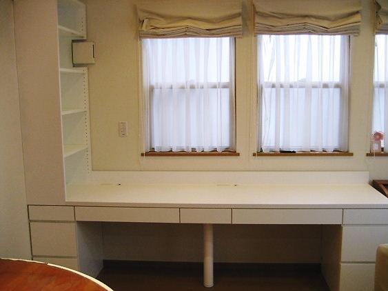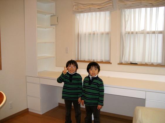 リビングの壁に、オーダーメイドのデスクを製作しました。優秀なおこさんは家族のいるリビングで勉強をしているというデータもあります。